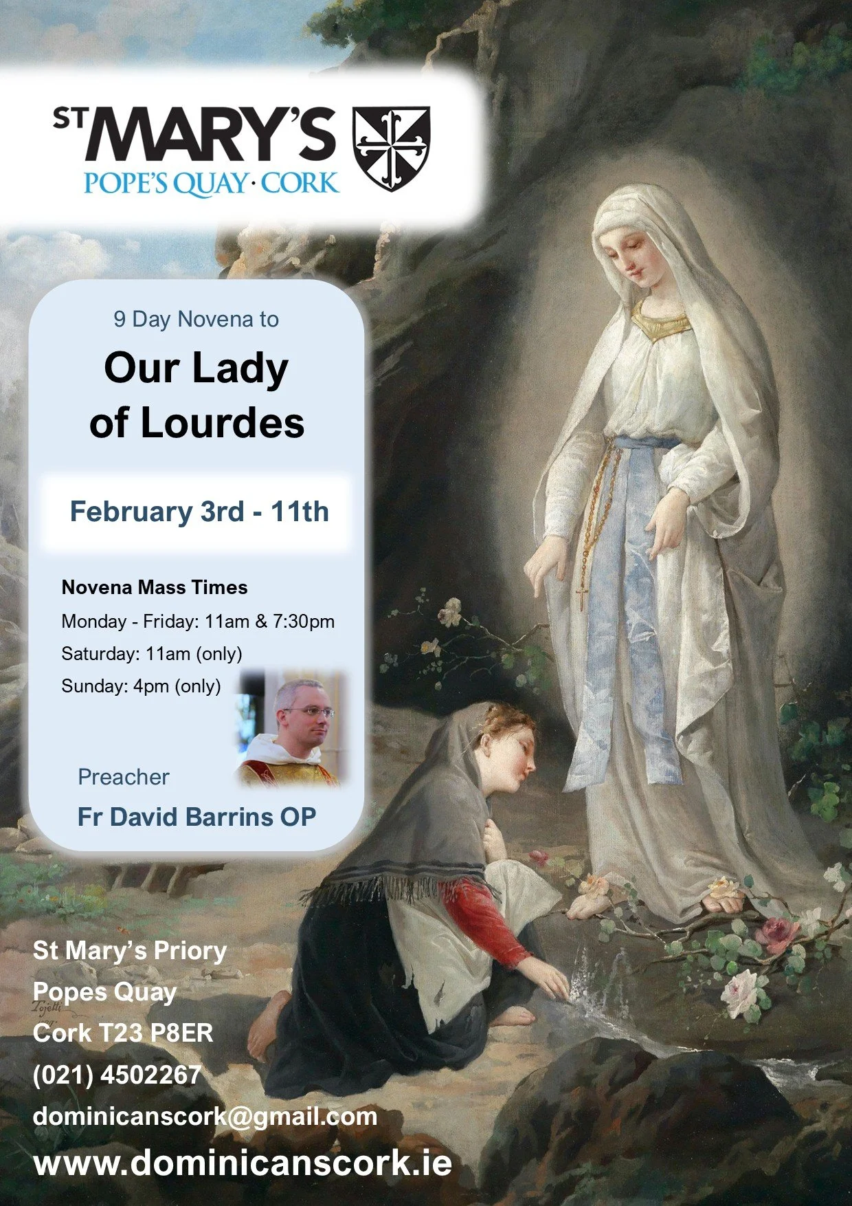 Join us at St Mary’s, Pope’s Quay, for a 9-Day Novena to Our Lady of Lourdes from February 3rd–11th.